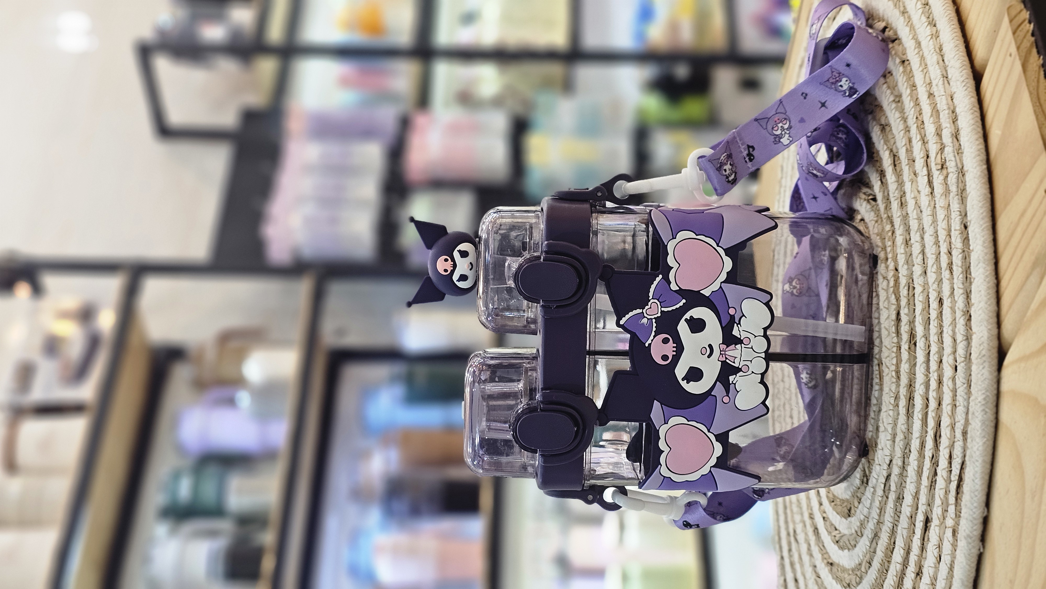قمقمه دو مخزنه کودک نی دار فانتزی طرح کرومی بنفش ۶۸۰ میل نشکن وارداتی