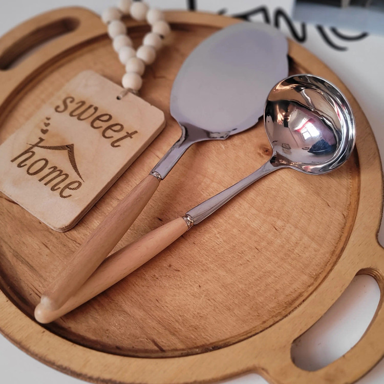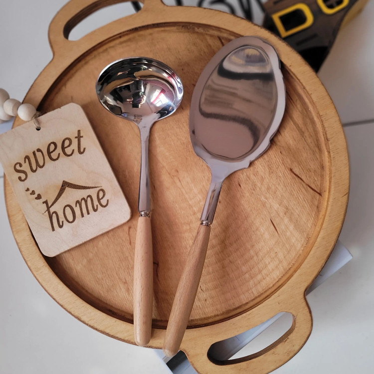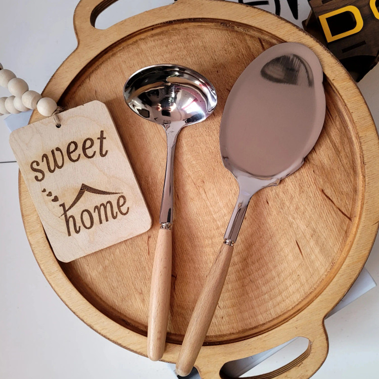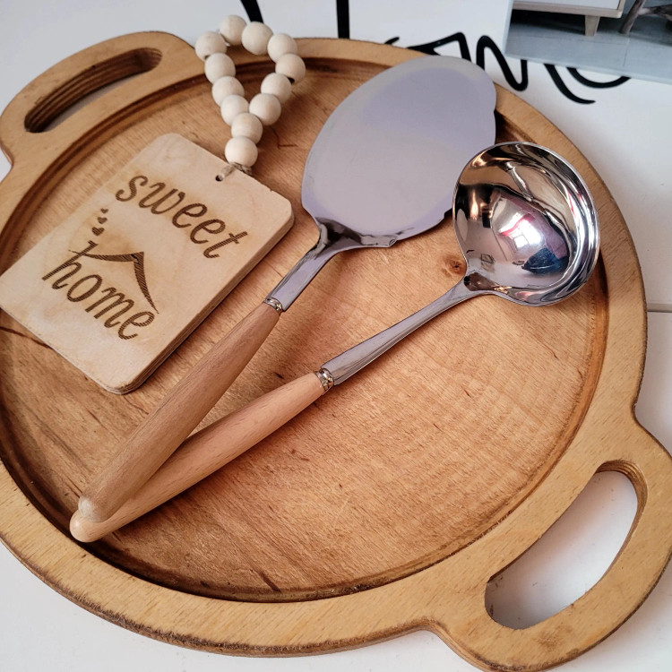 کفگیروملاقه جنس دسته چوب بامبو - جنس کفگیر استیل -ساخت کشور چین -مناسب برای پخت وپز ، سرو غذا و... - زیبا وشیک -کیفیت عالی