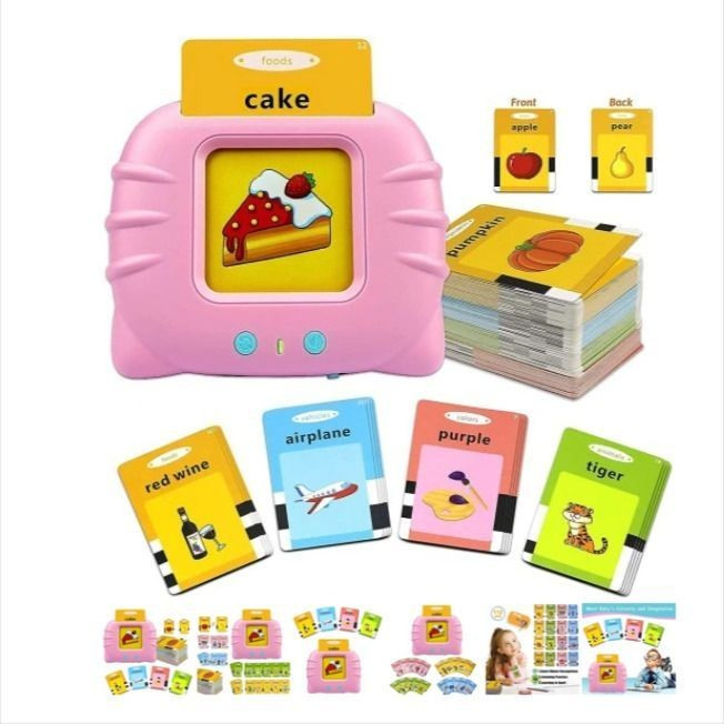 سخنگو بودن آن به این صورت می باشد که هر کارتی را که در داخل دستگاه قرار می دهید می توانید تلفظ آن را به صورت انگلیسی بشنوید. فلش کارت سخنگو آموزش زبان انگلیسی رنگ آبی و صورتی دارای دو مدل 224لغتی که شامل ۱۱۲ کارت میشه