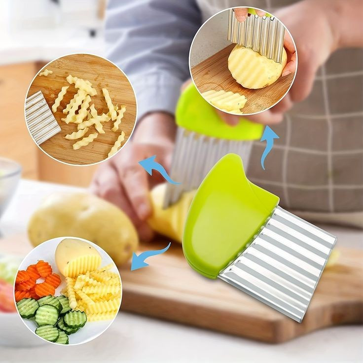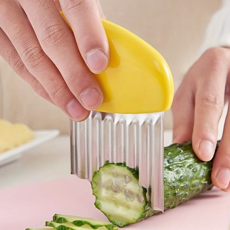 این کاتر دارای تیغه موجی شکل و تیز بوده که با یک فشار ساده می توانید ورقه یا خلال های دالبری شکل زیبا از سیب زمینی، خیار، هویج، سوسیس و… تهیه کرده و تزئین غذا و سفره آرایی بهتری داشته باشید. از کاتر دالبر زن می توان در منزل، رستوران ها، هتل ها، فست فودها و… استفاده کرد.