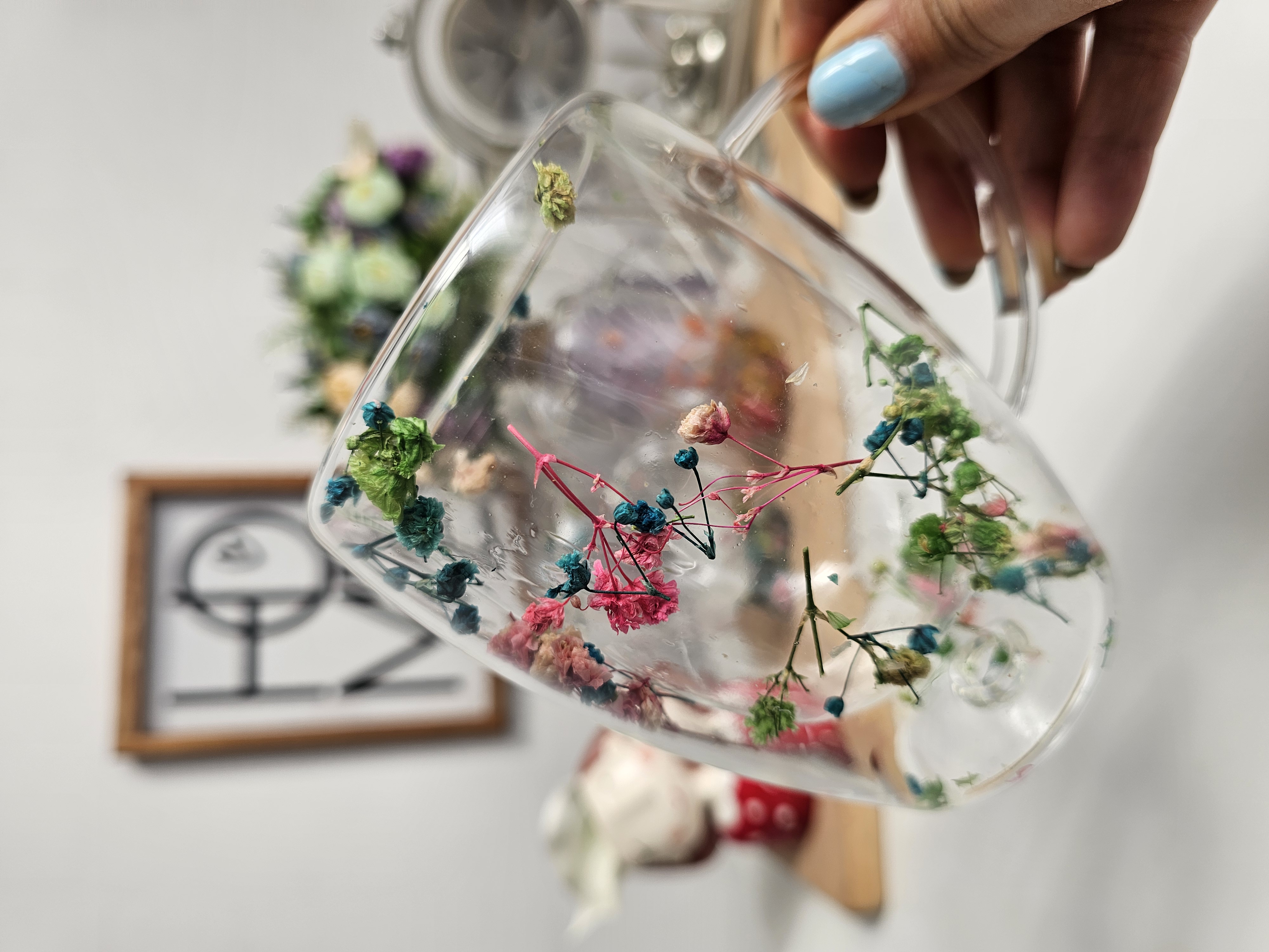بین دو جدار گلهای خشک وجود دارد که با تکان دادن لیوان حرکت میکنند