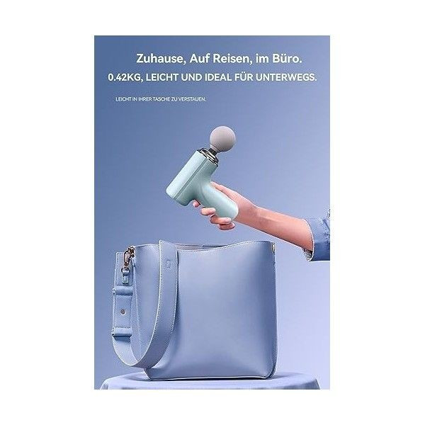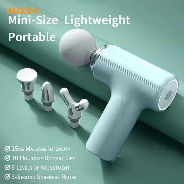 ماساژور به شکل تپانچه ای ارگونومیک ساخته شده است، به راحتی در دست قرار می گیرد و استفاده از آن راحت است. این مجموعه شامل 4 ضمیمه برای هدف قرار دادن گروه های عضلانی خاص در پاها، باسن، پشت، سینه، مچ دست و استخوان ها است.