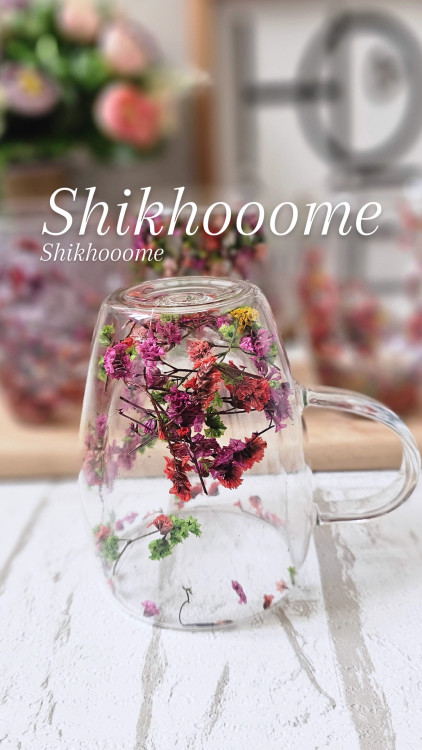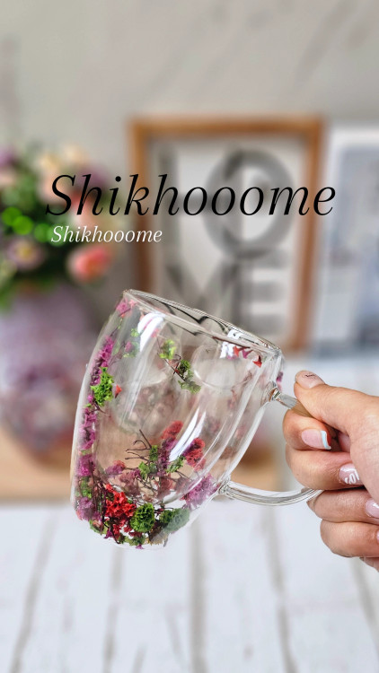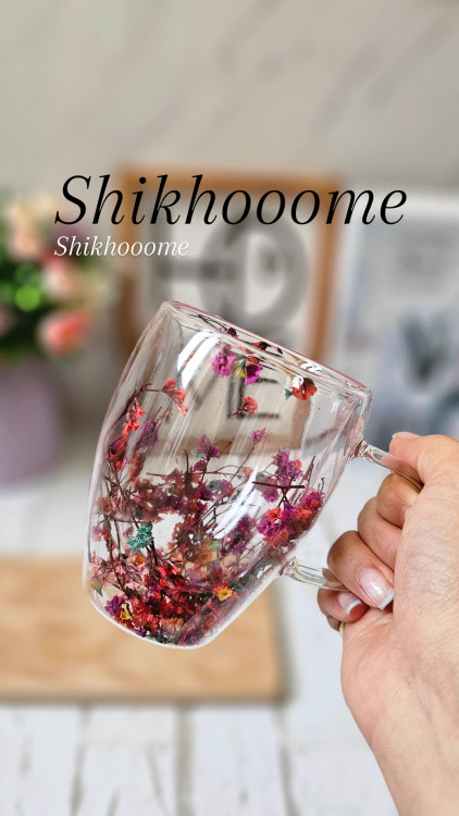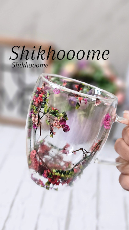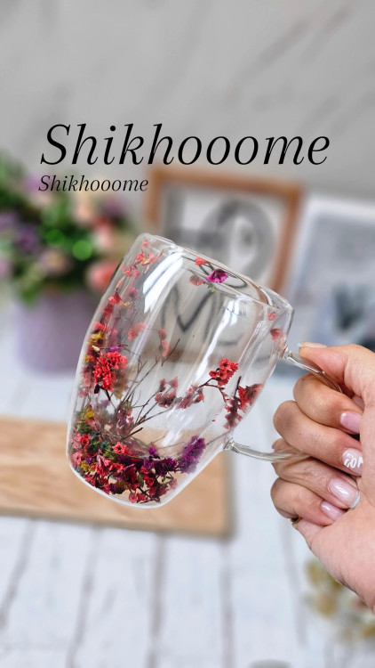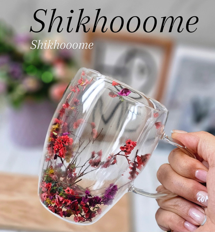 بین دو جدار گلهای خشک وجود دارد که با تکان دادن لیوان حرکت میکنند