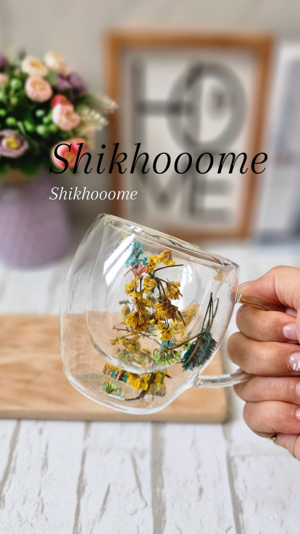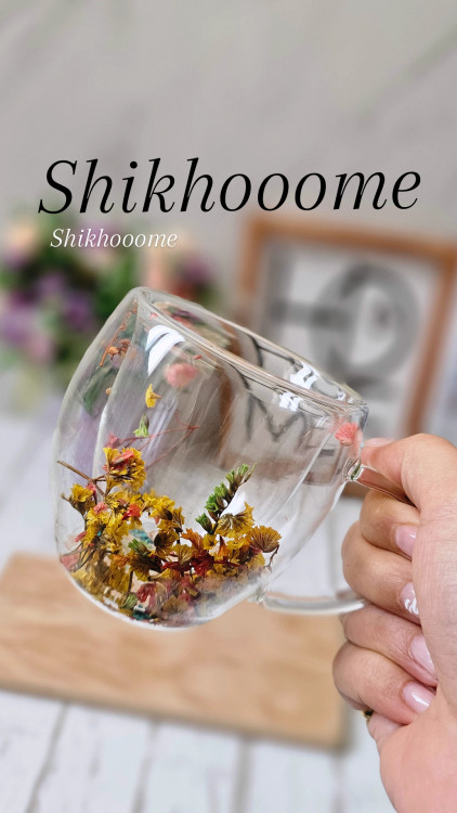 بین دو جدار گلهای خشک وجود دارد که با تکان دادن لیوان حرکت میکنند