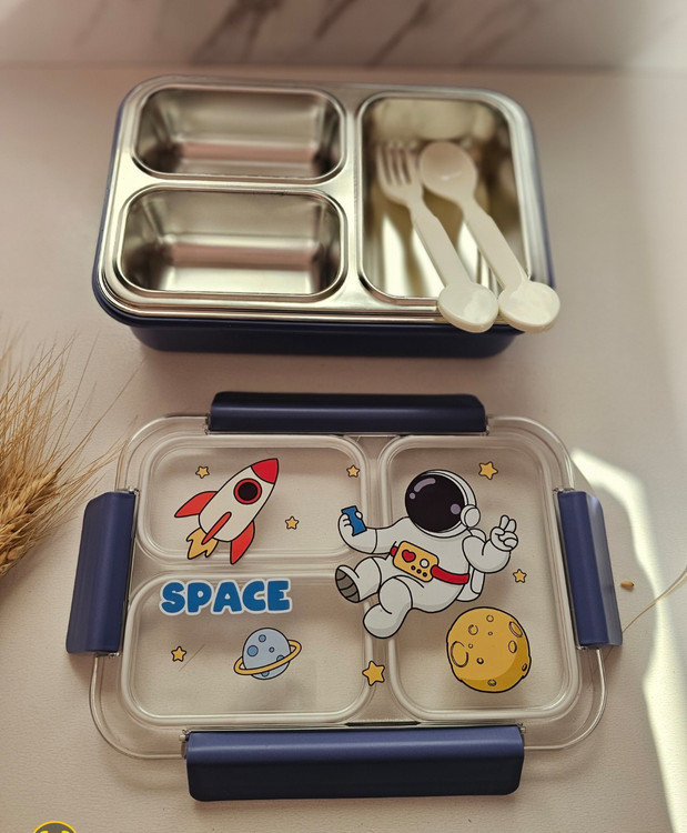 ظرف غذای کودک داخل استیل واشردار سه بخشی فضانورد با کیفیت
