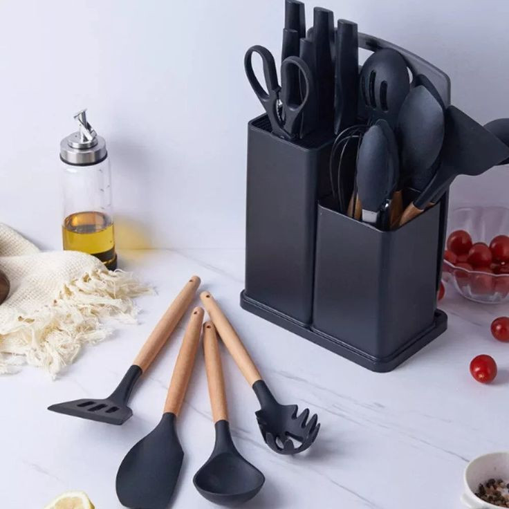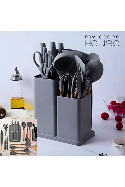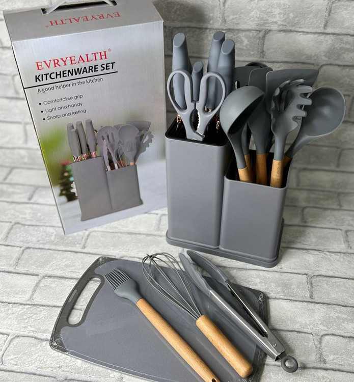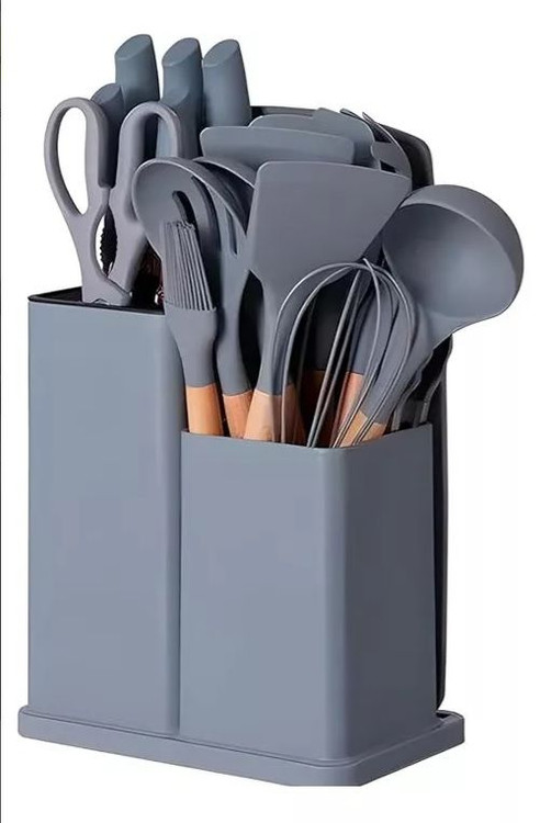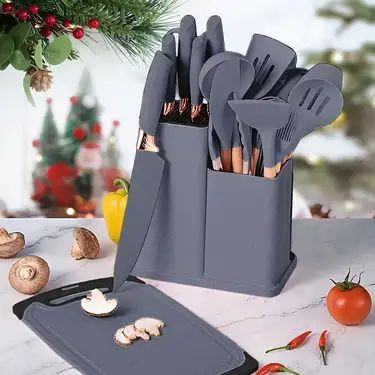 سرویس کفگیر و ملاقه سیلیکونی به همراه کارد و تخته گوشت 19 پارچه