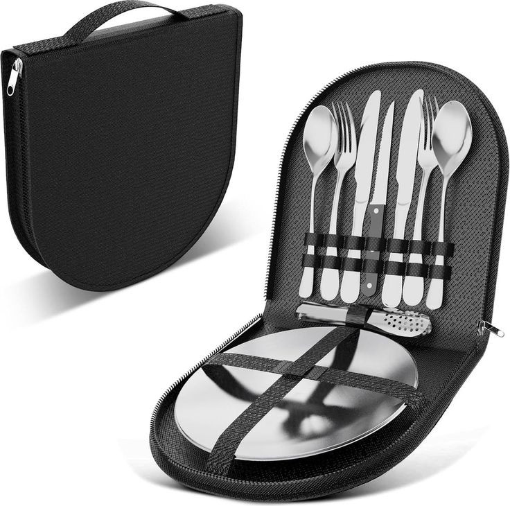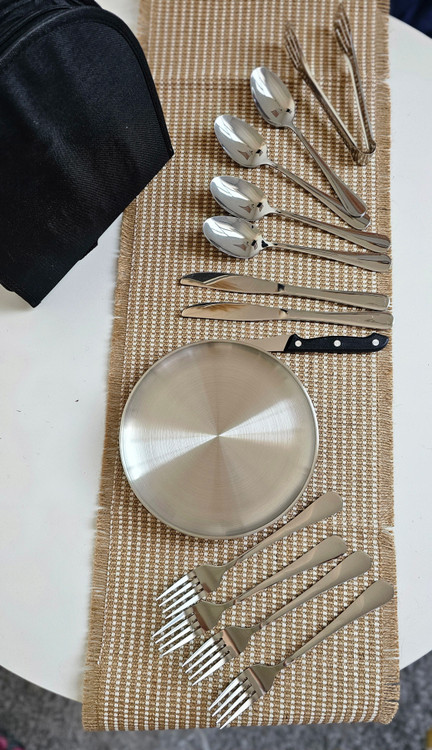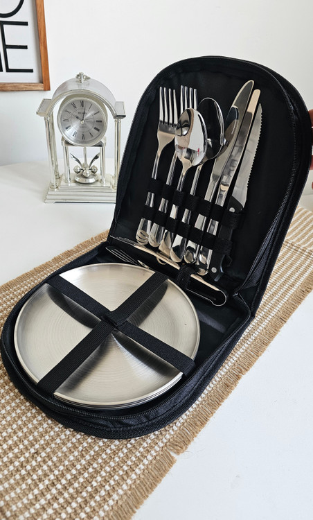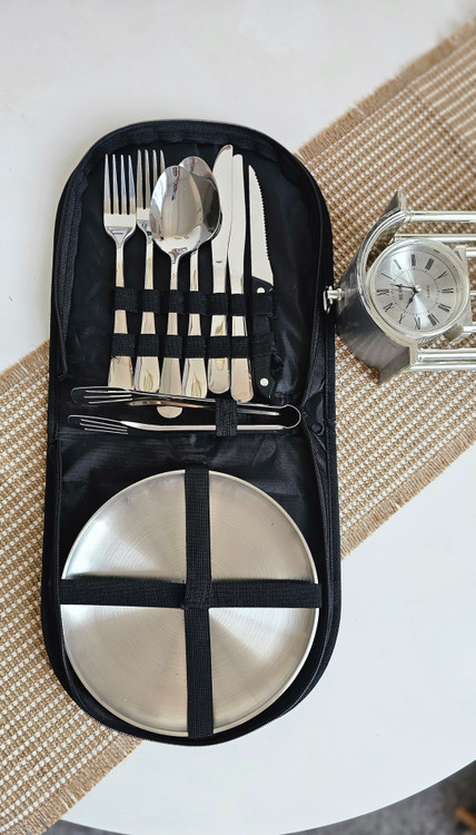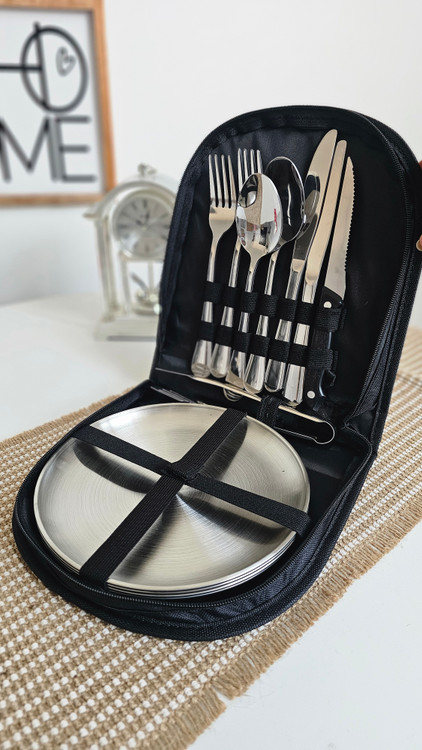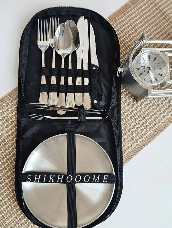 ست ظروف مسافرتی ۴ نفره استیل سیلور کیف دار