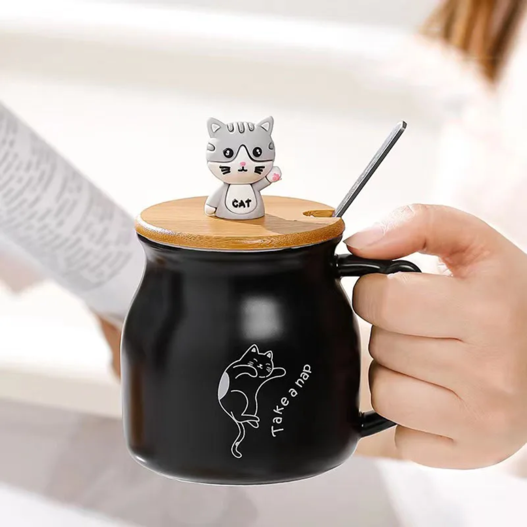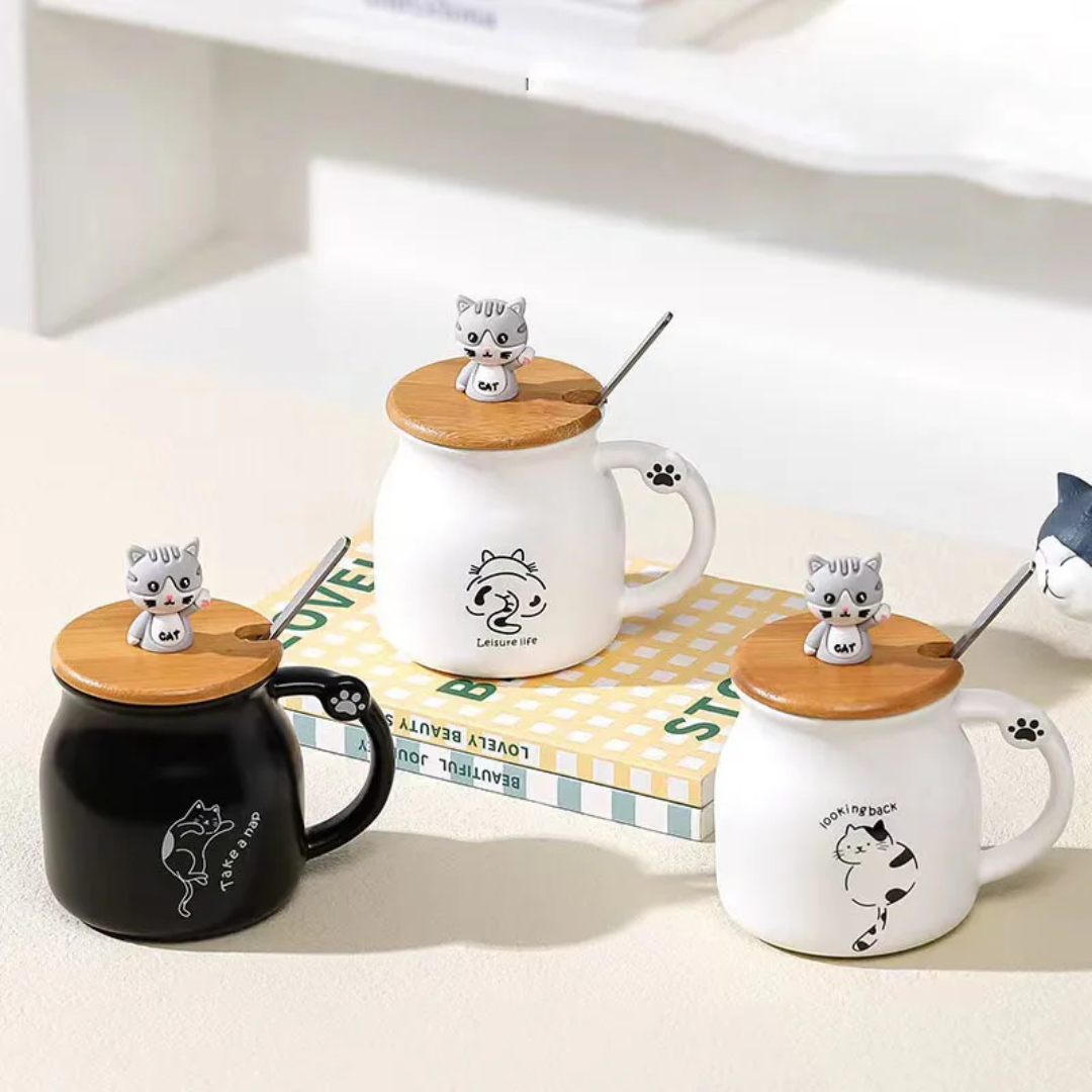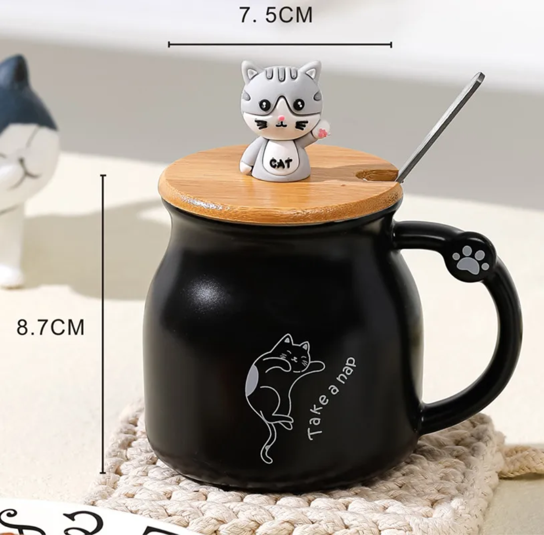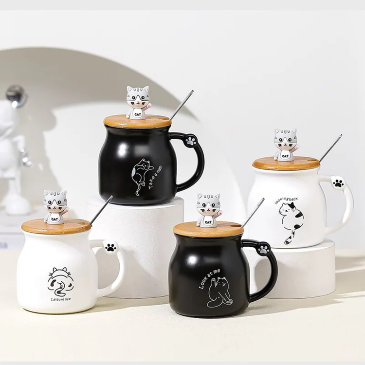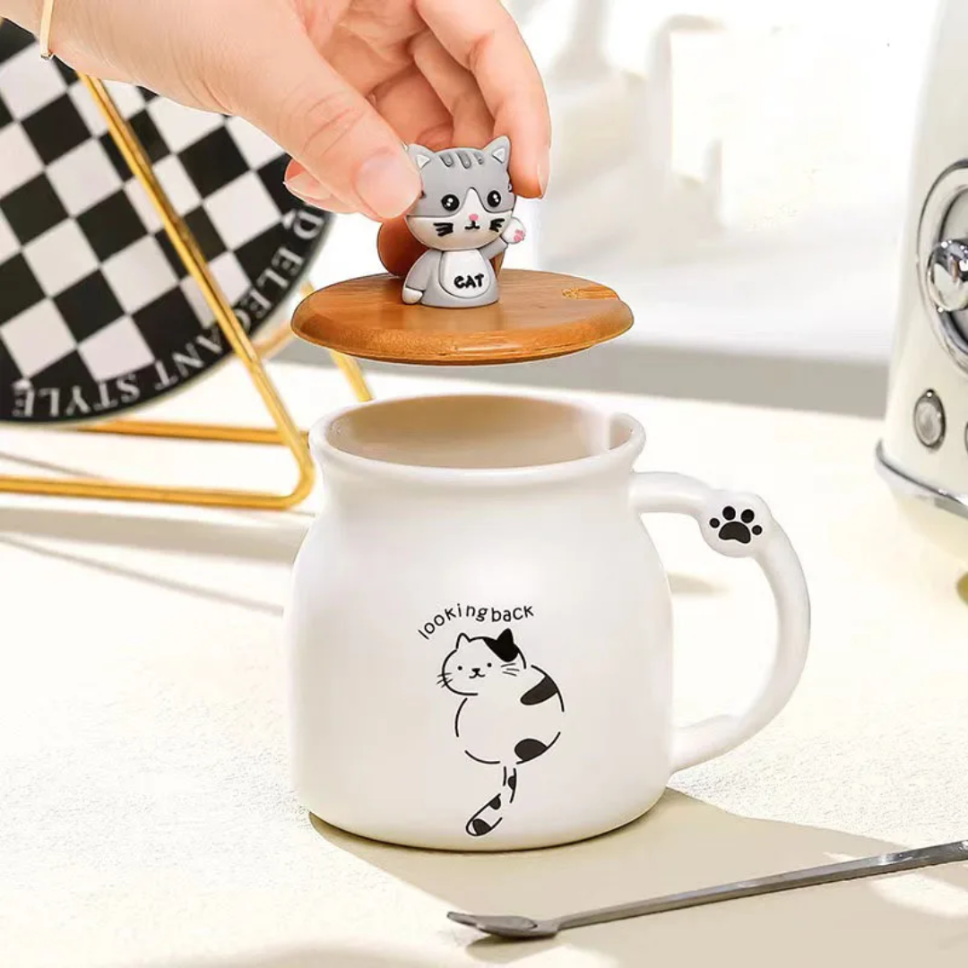 ماگ سرامیکی درب چوبی گربه