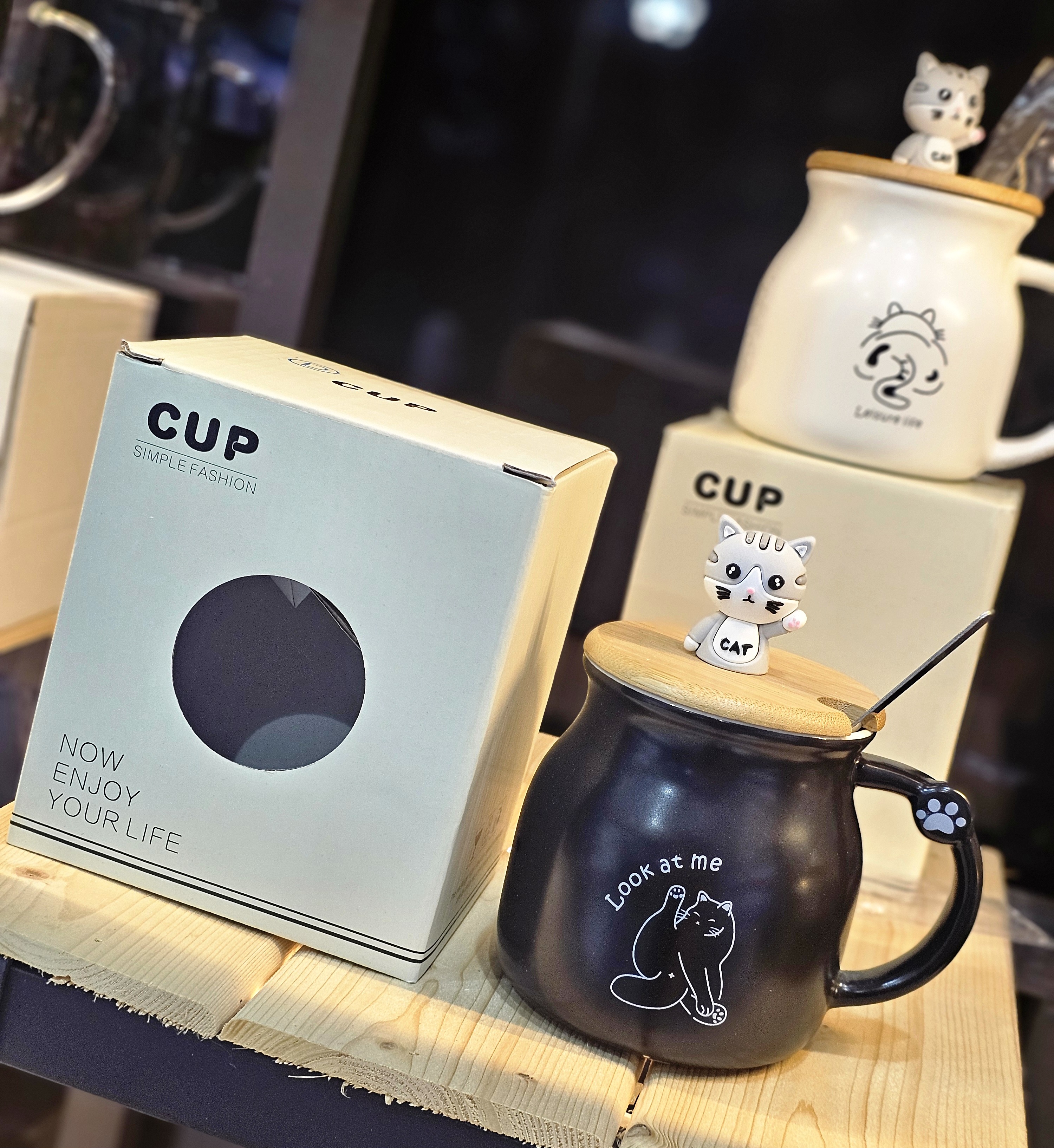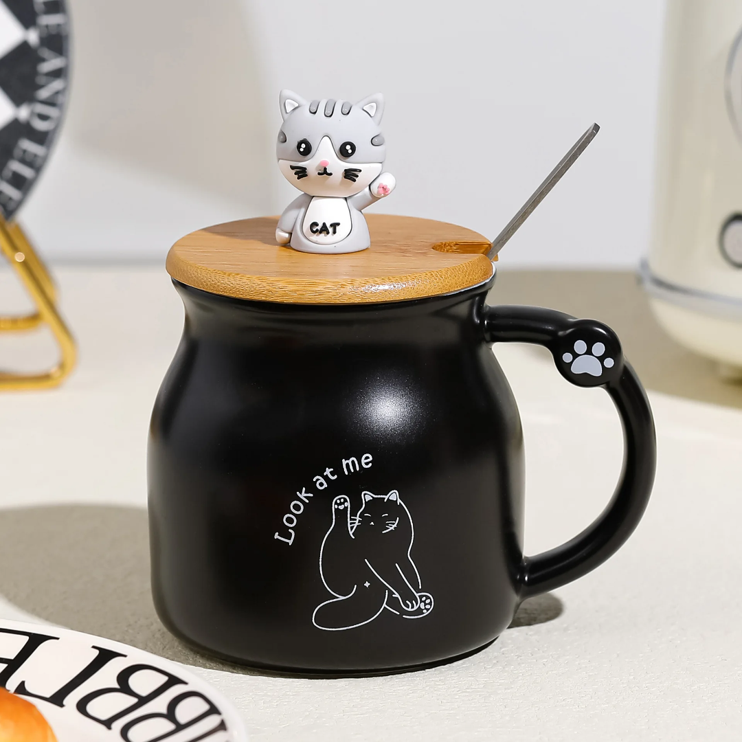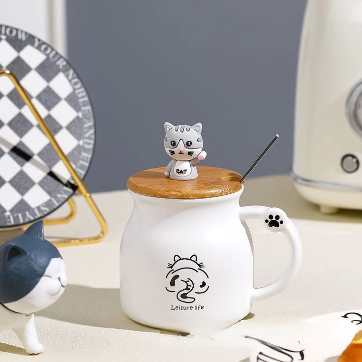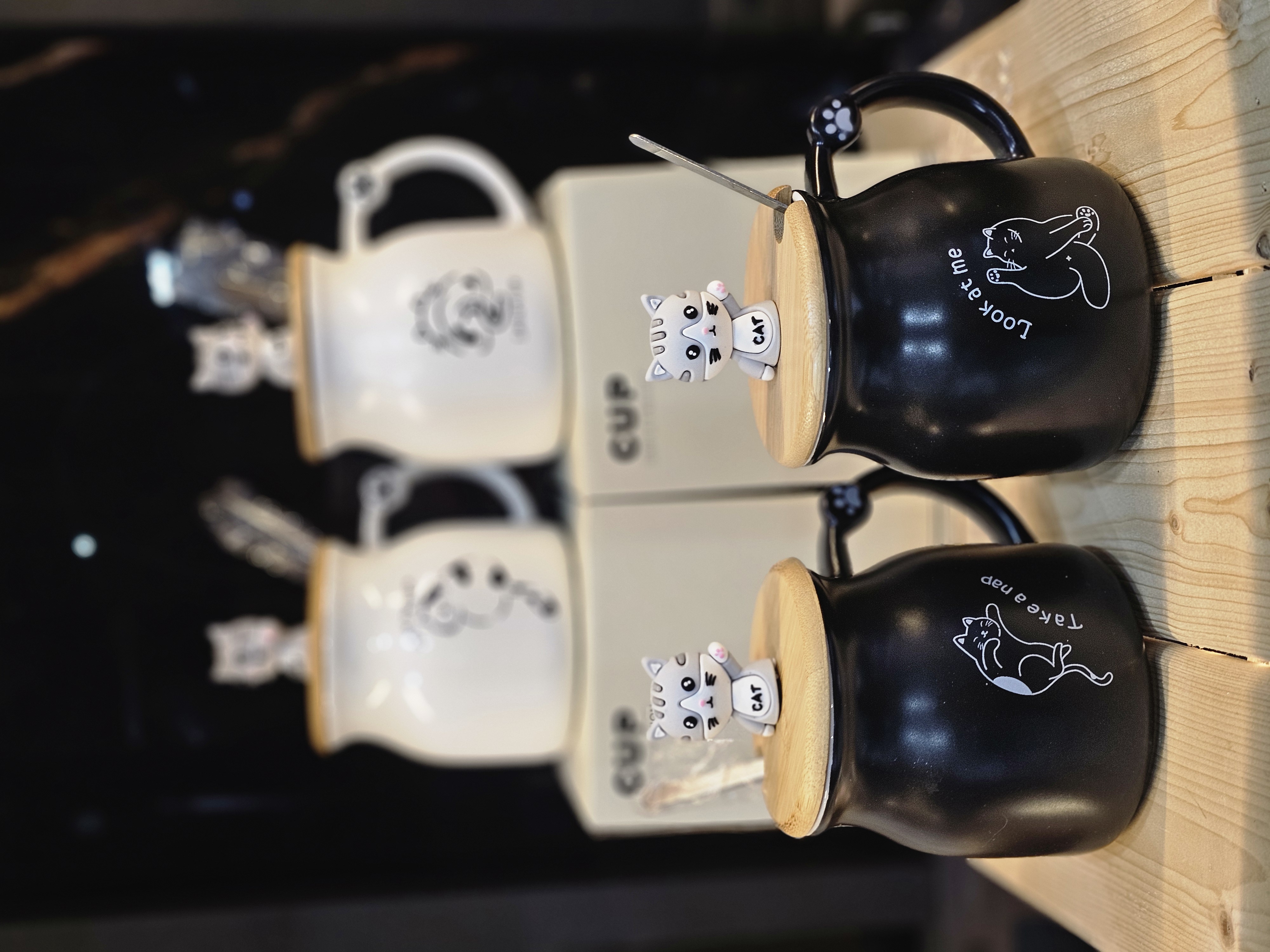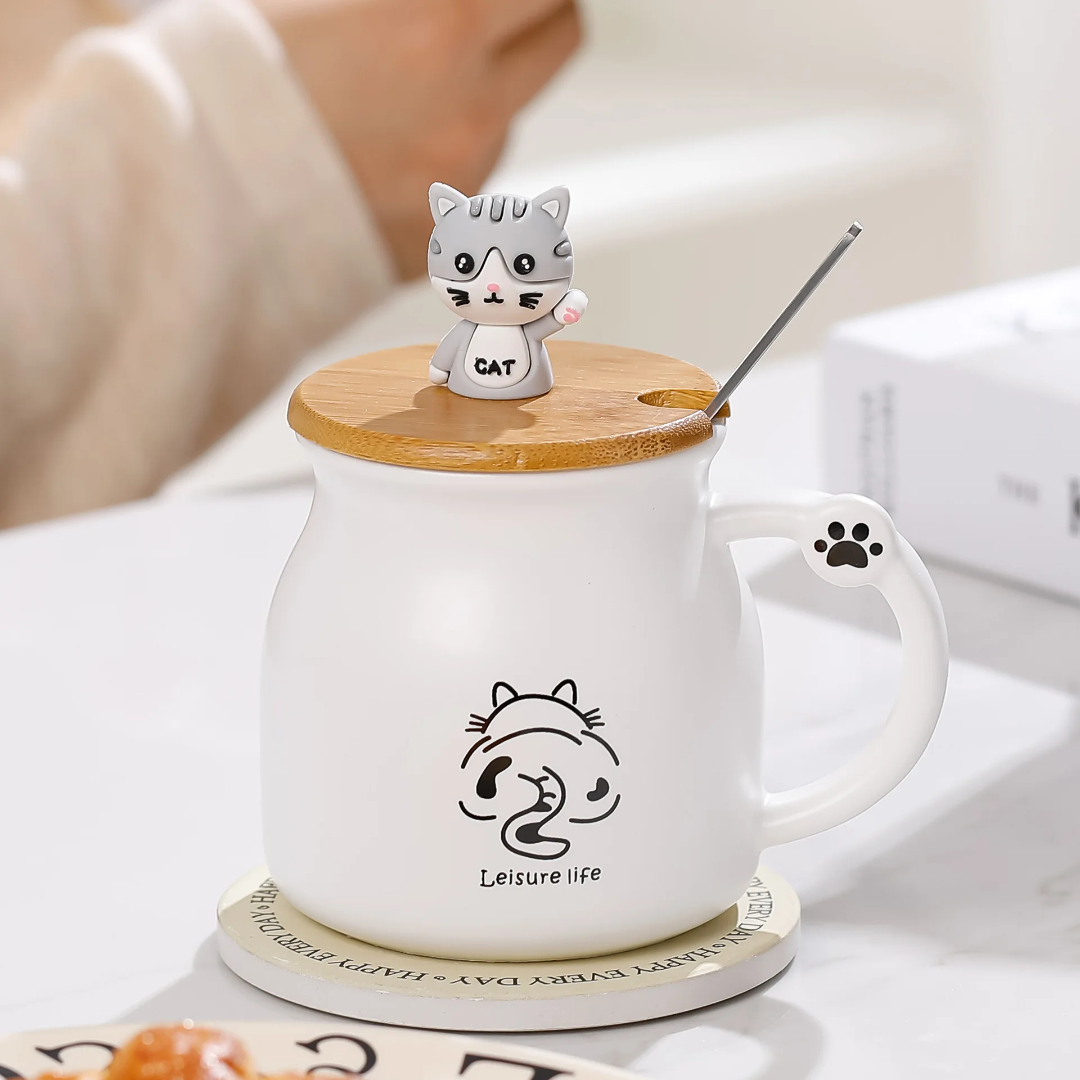 ماگ سرامیکی درب چوبی گربه