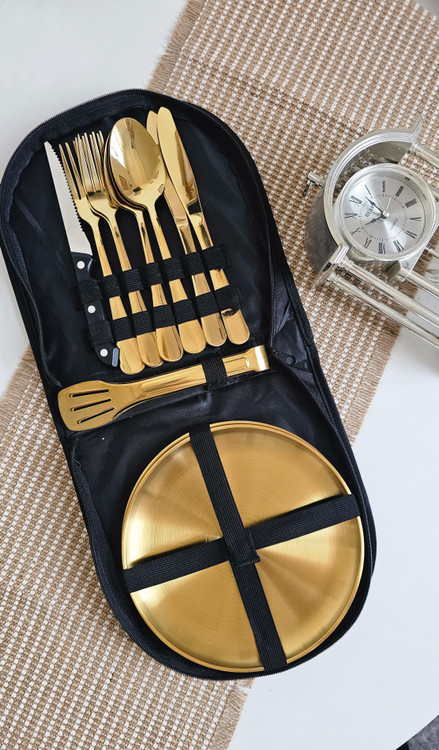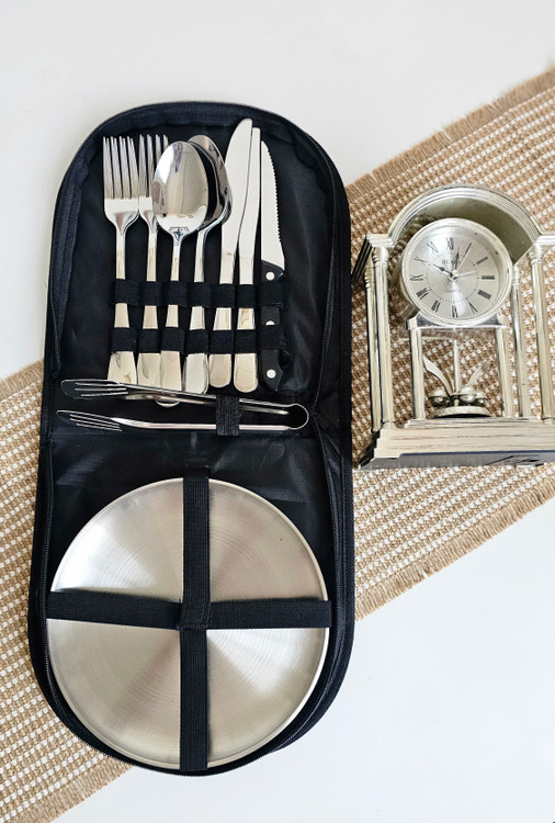 ست ظروف مسافرتی ۴ نفره استیل کیف دار