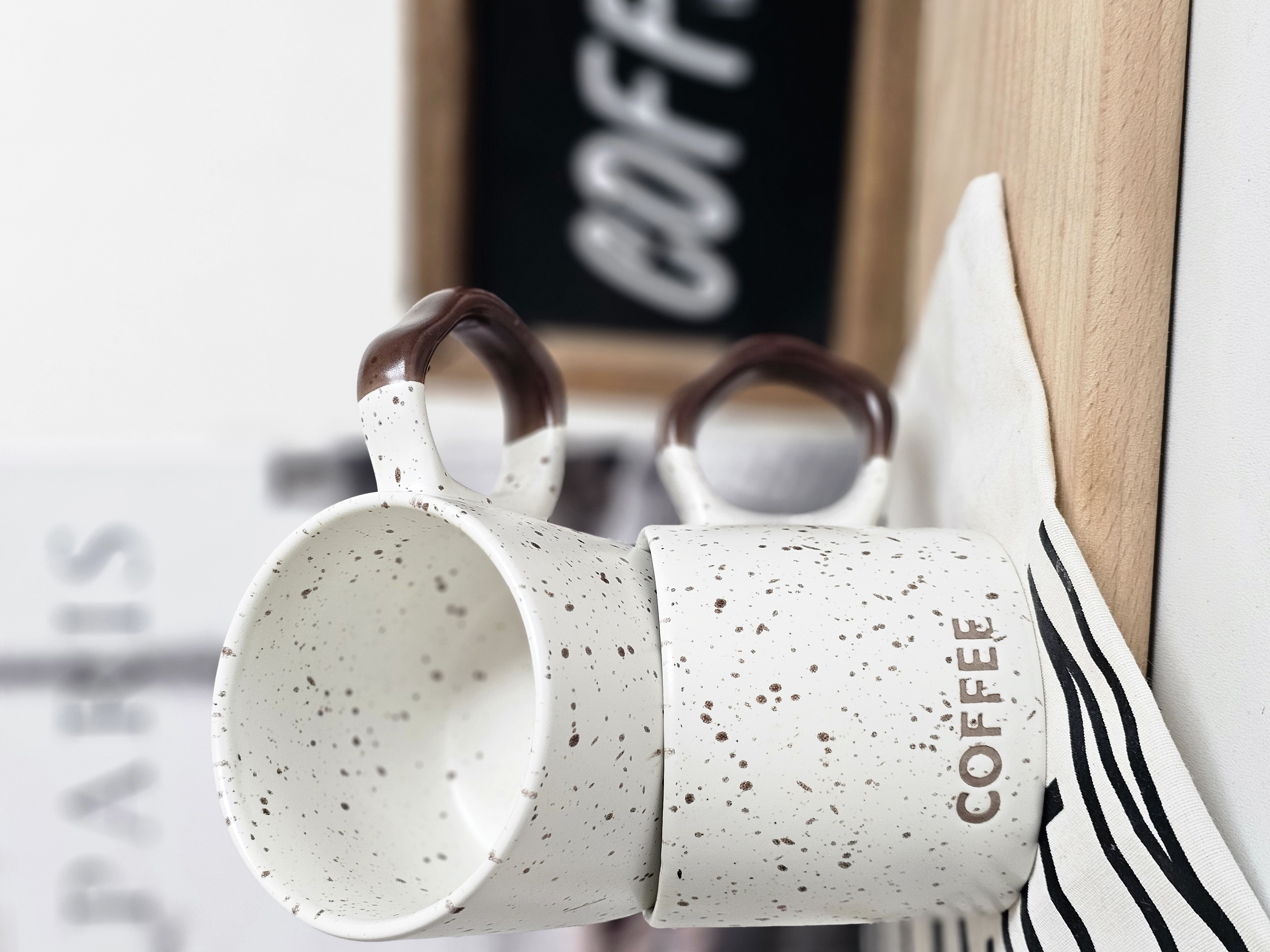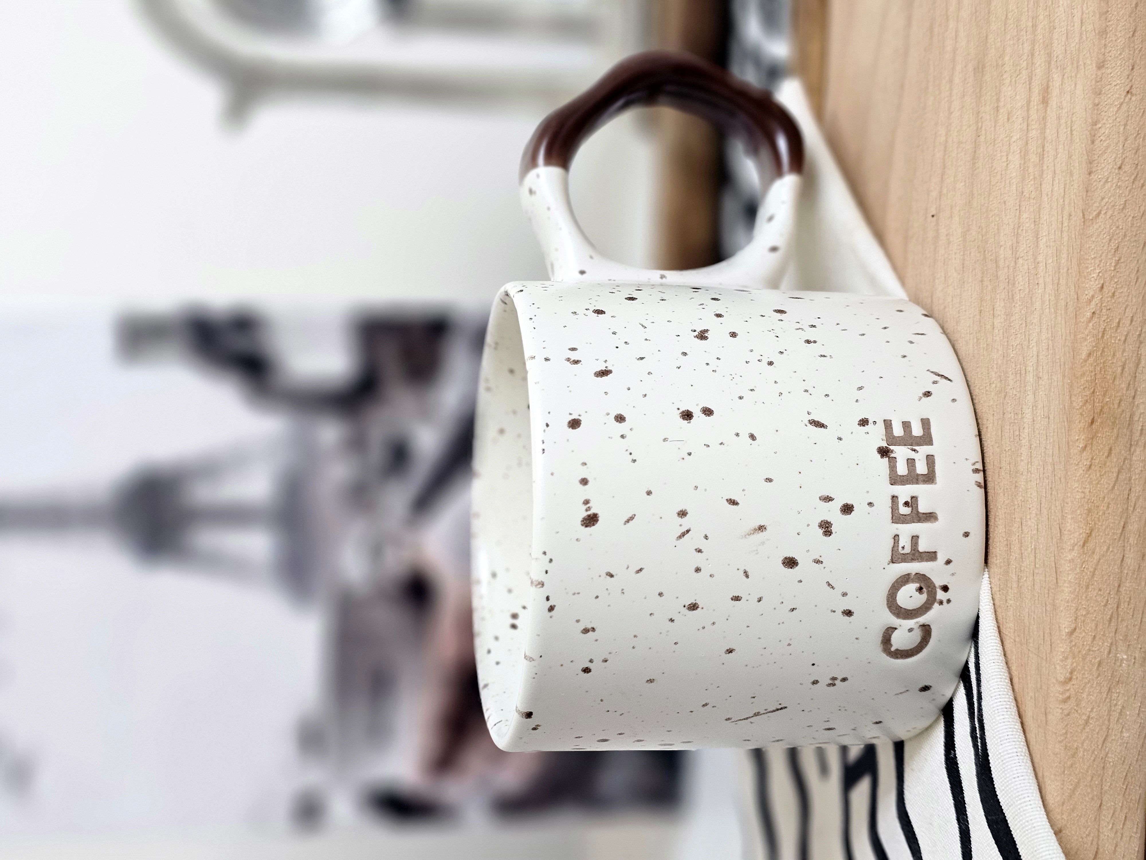 اگر به دنبال ماگی ساده، شیک و کاربردی هستید، این مدل انتخاب ایدهآلی است. طراحی مینیمال با رنگهای جذاب سفید، خاکستری و سفید خالدار باعث شده هم برای محیط کار مثل اداره مناسب باشد و هم برای استفادهی روزمره در منزل.