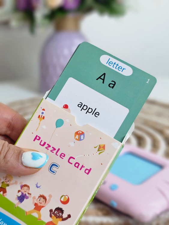 این کیت شامل یک دستگاه پخش صداست که با usb به شارژر متصل می شود و باعث می شود بی نیاز به باتری باشید. و به همراهش 255 عدد کارت دو طرفه وجود دارد که در هر طرف یک تصویر به همراه اسم آن تصویر کشیده شده است. کافیست دکمه ی روشن کیت را بزنید و کارت را از شیار وارد اسپیکر کنید. دستگاه نام انگلیسی و در بعضی کارتها مانند حیوانات صدای آن حیوان را پخش میکند.