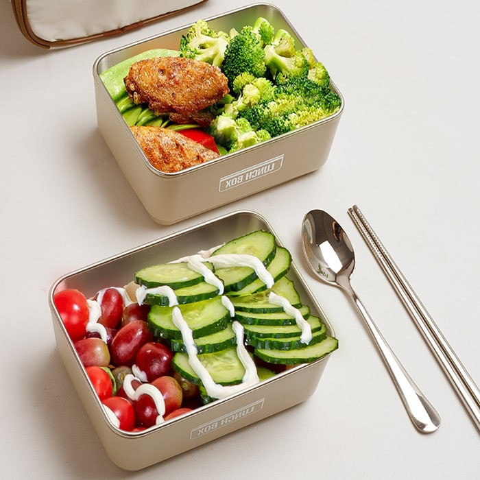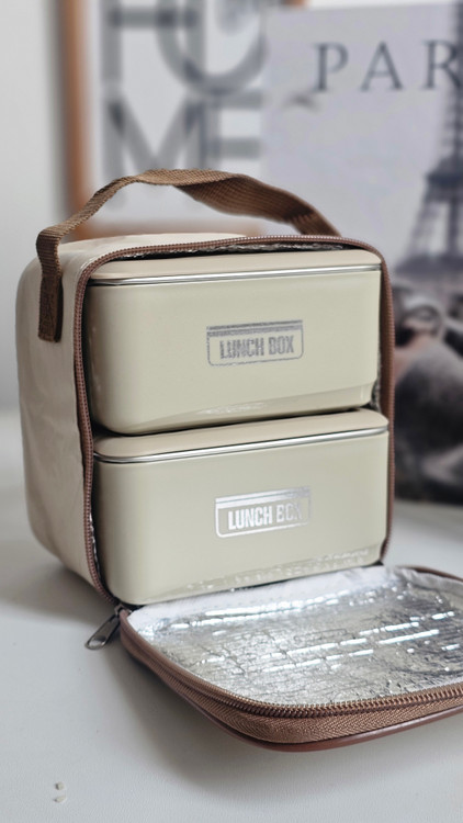ظرف غذا و لانچ باکس دوعددی استیل مستطیلی کیف عایق دار