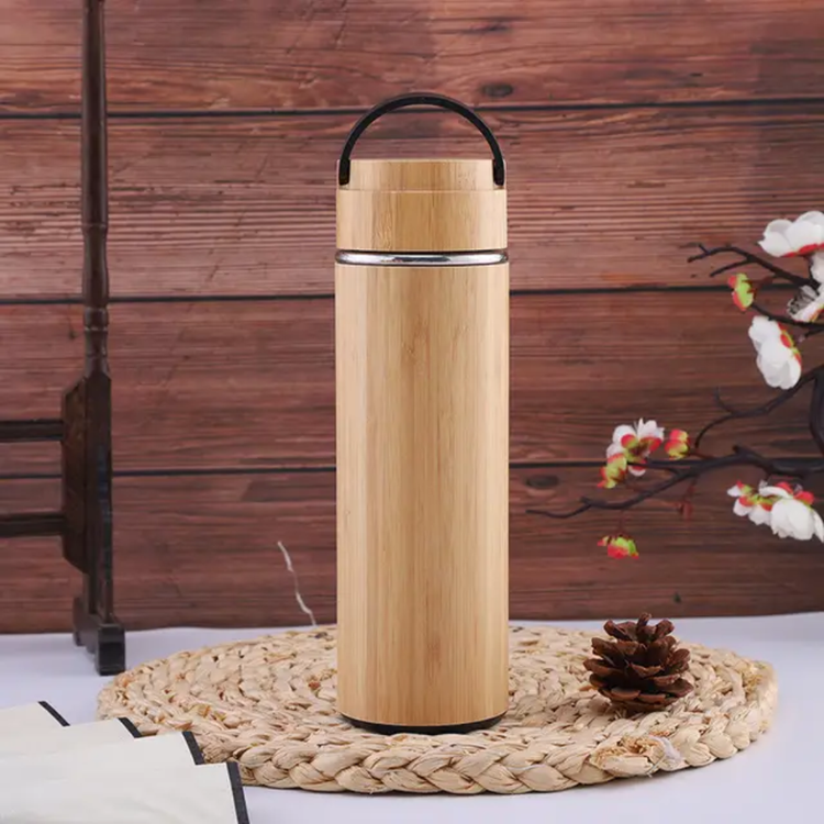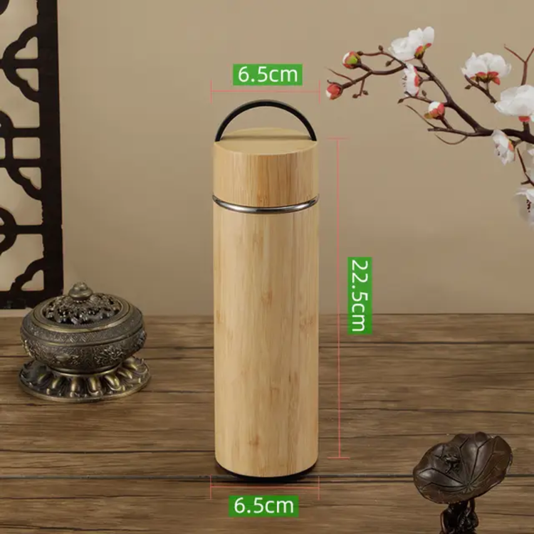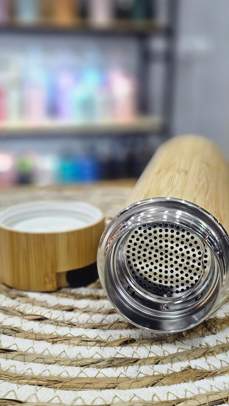 تراول ماگ وارداتی بدنه بامبو داخل استیل فیلتر دار