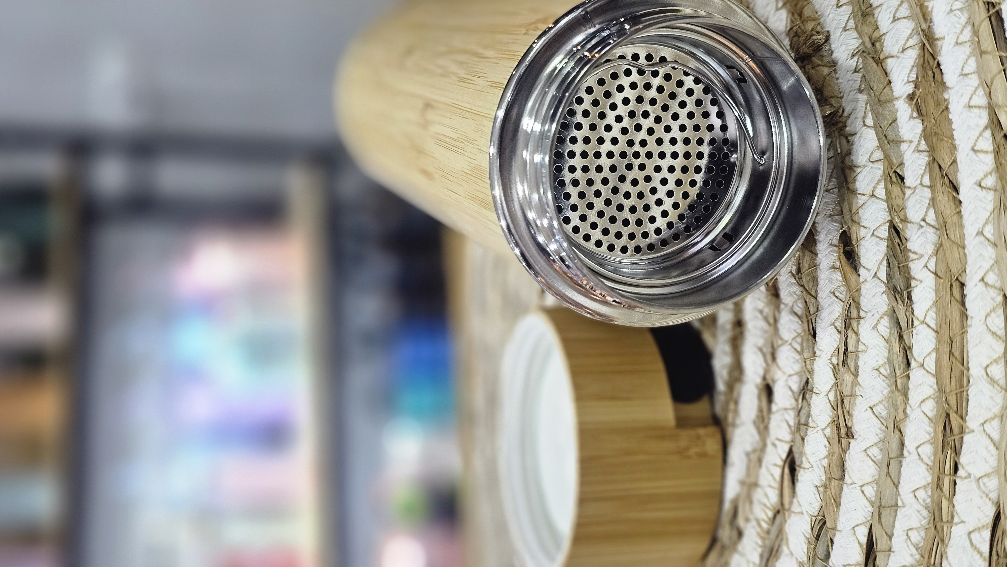 فلاسک وارداتی بدنه بامبو داخل استیل فیلتر دار