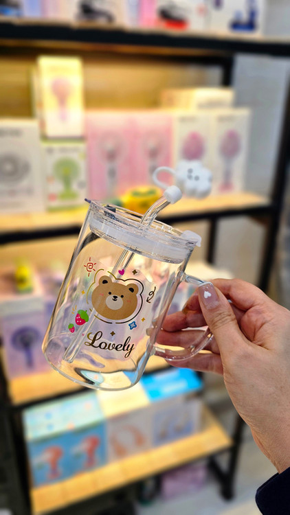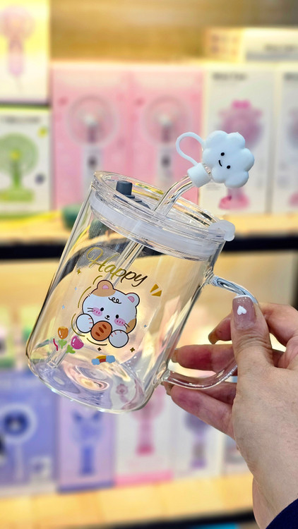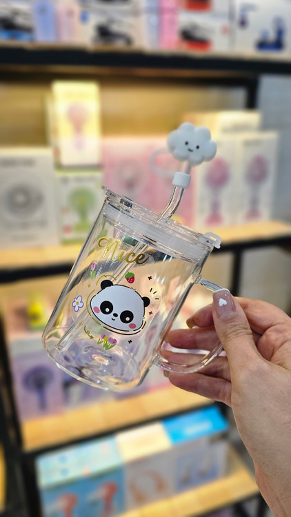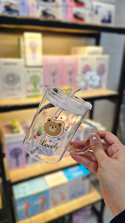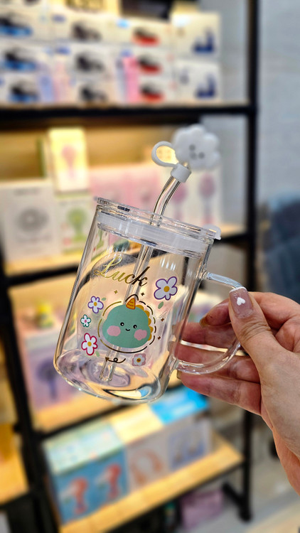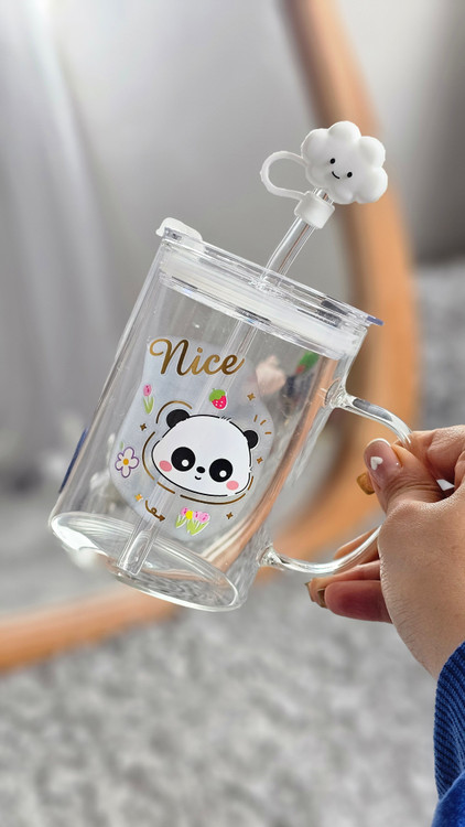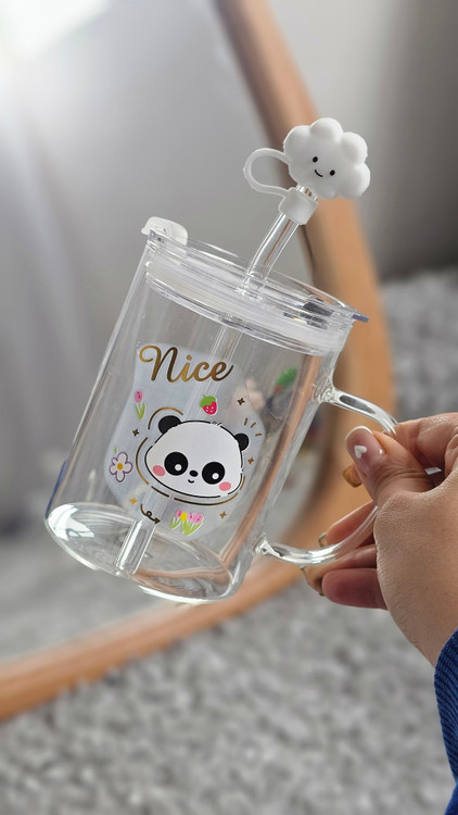 ماگ شیشه ای فانتزی دسته دار و نی دار