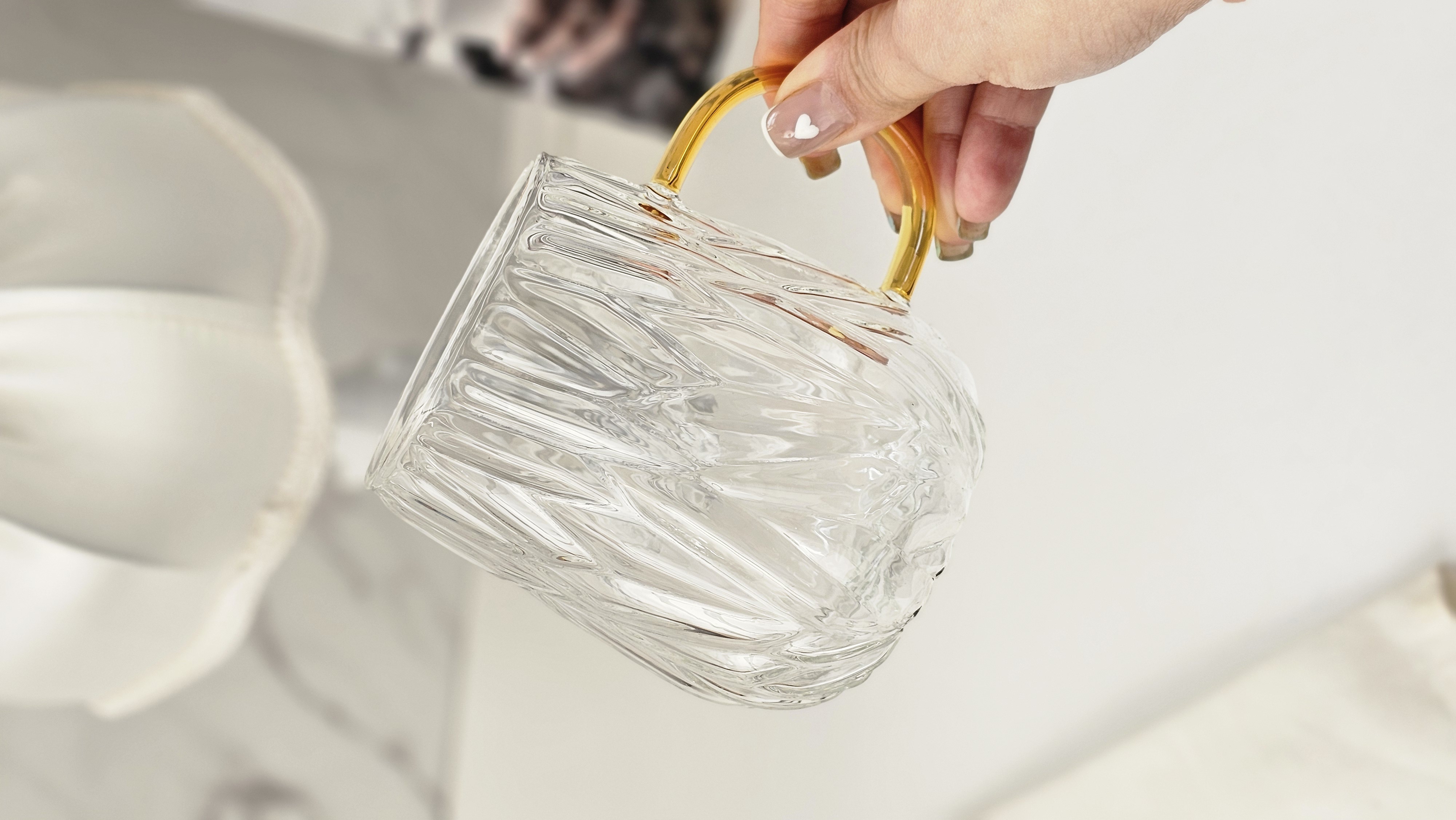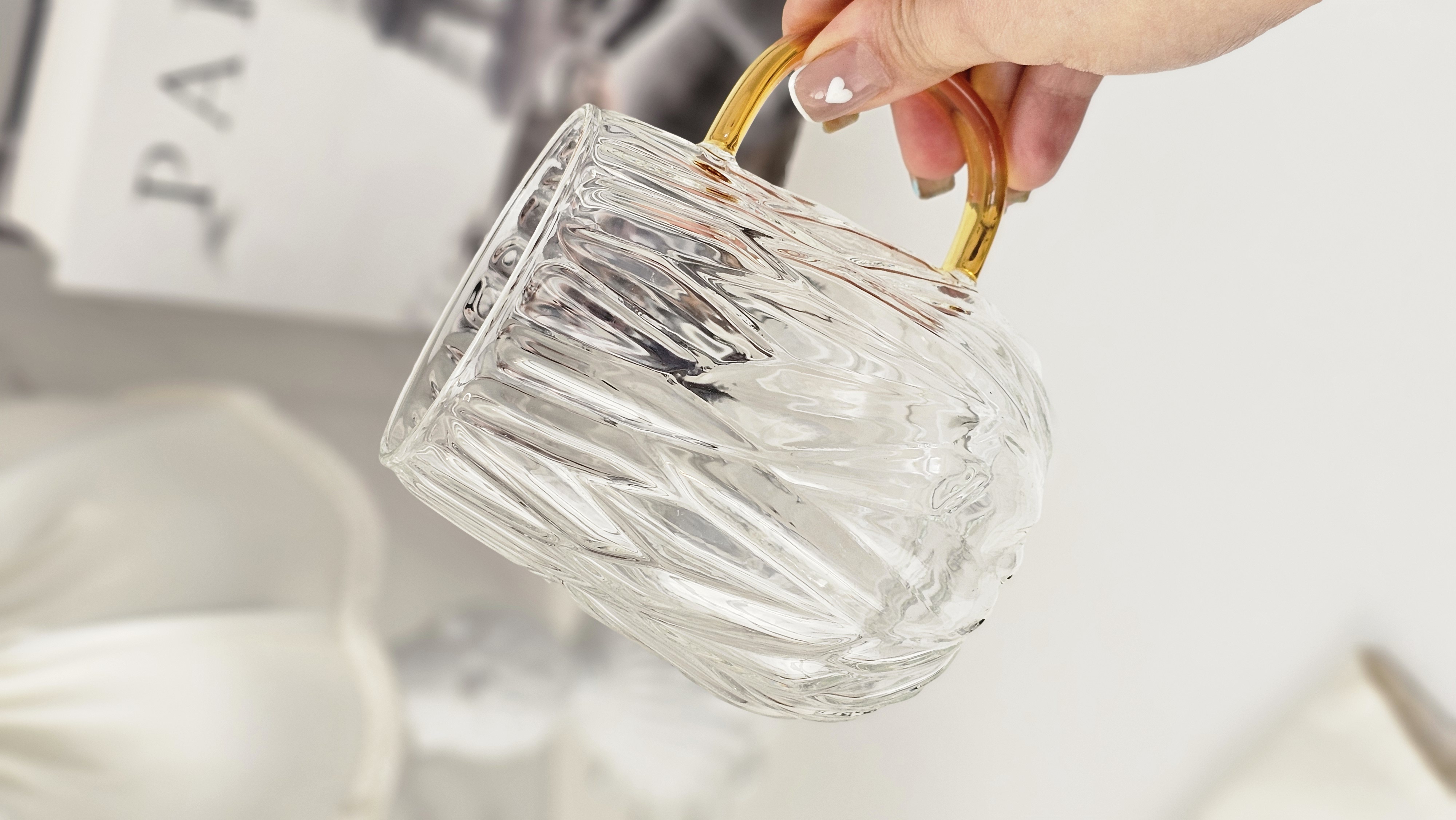 لیوان پیرکس دسته طلایی طرح نامنظم