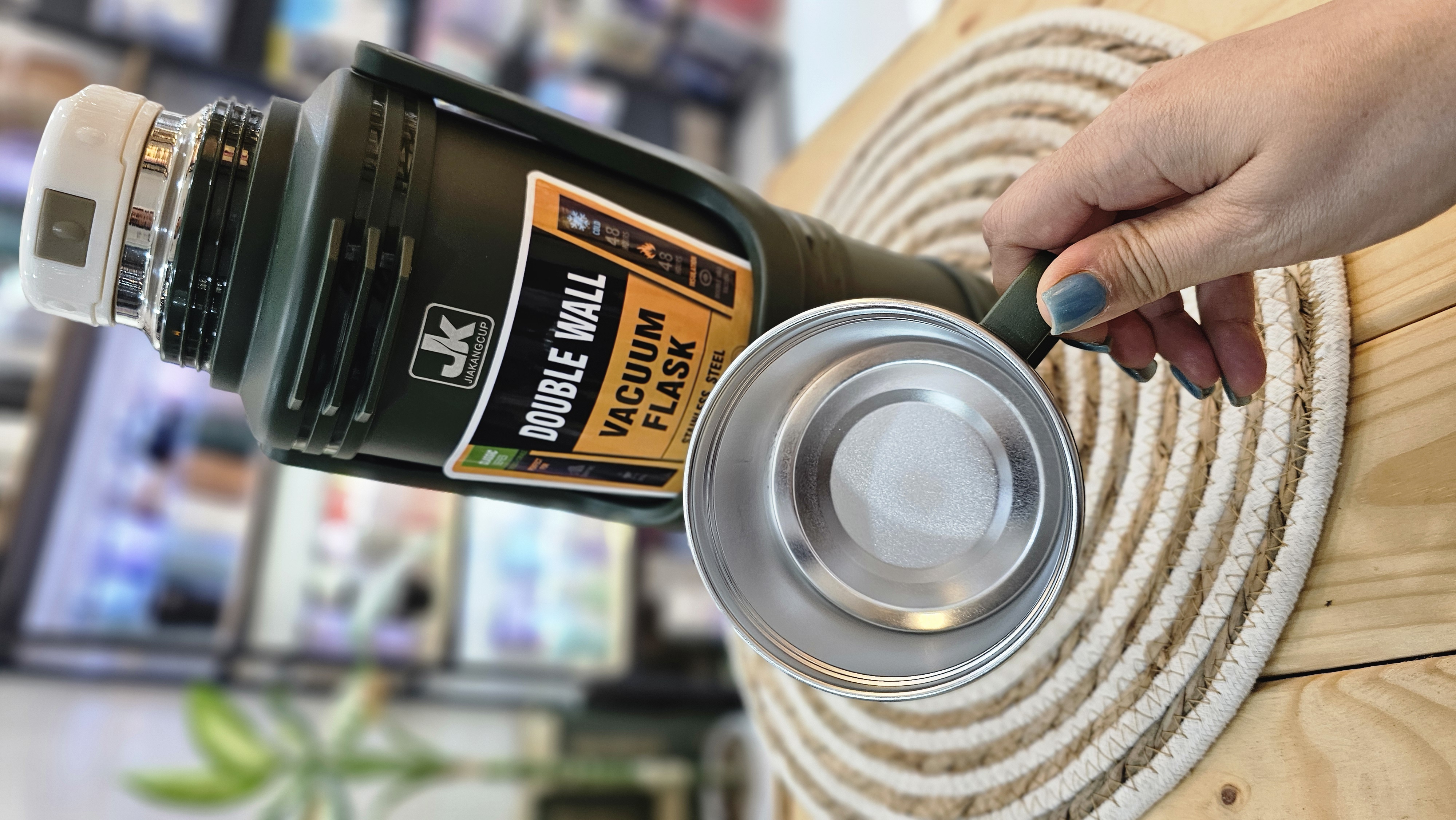 ساختار دیواره عایق خلاء دو جداره امکان گرم ماندن چای، سوپ، قهوه یا سایر نوشیدنیهای داغ را تا 60 ساعت فراهم میکند.