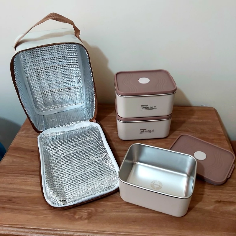 لانچ باکس استیل سهتکه مدل مستطیل + کیف غذای آلومینیومی، ترکیبی از دوام، طراحی مدرن و کاربرد فوقالعاده برای تمام موقعیتها!