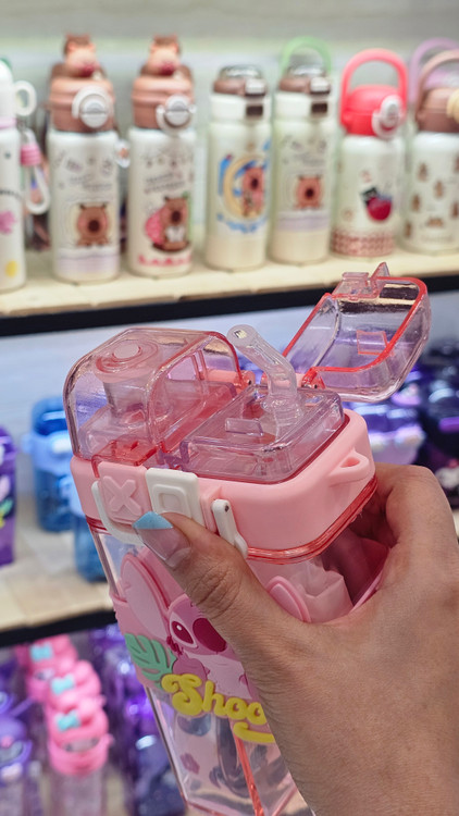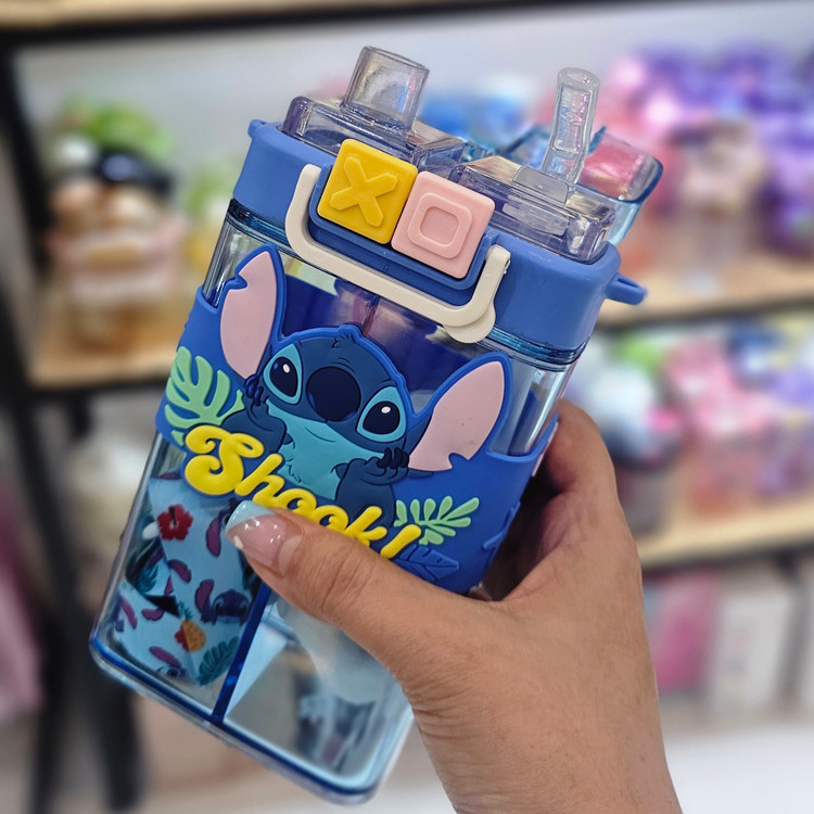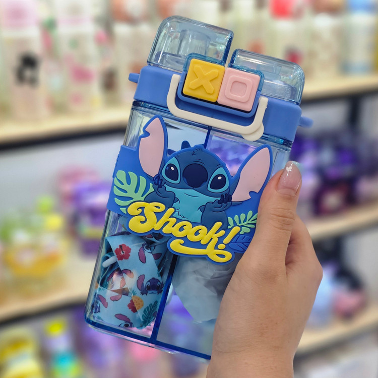 قمقمه دومخزنه کودک طرح استیچ وارداتی آسان نوش و نی دار